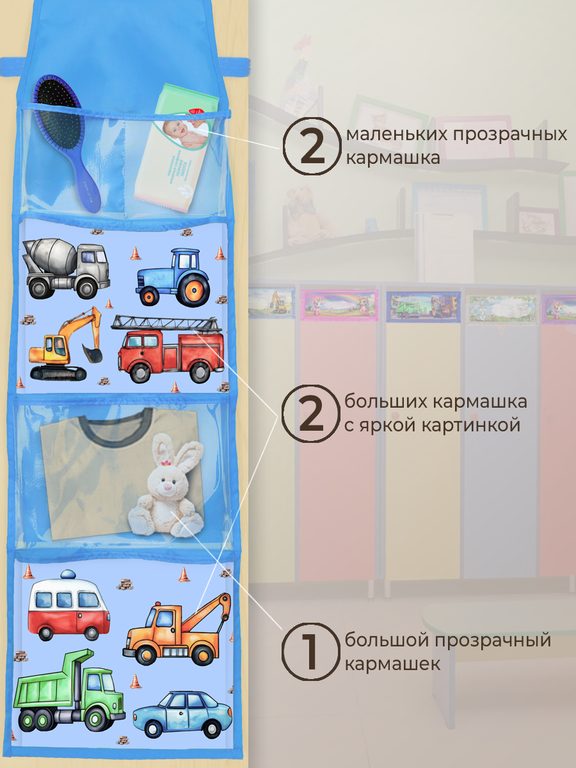 Кармашек Покетун прозрачный бежевый в шкафчик для детского сада